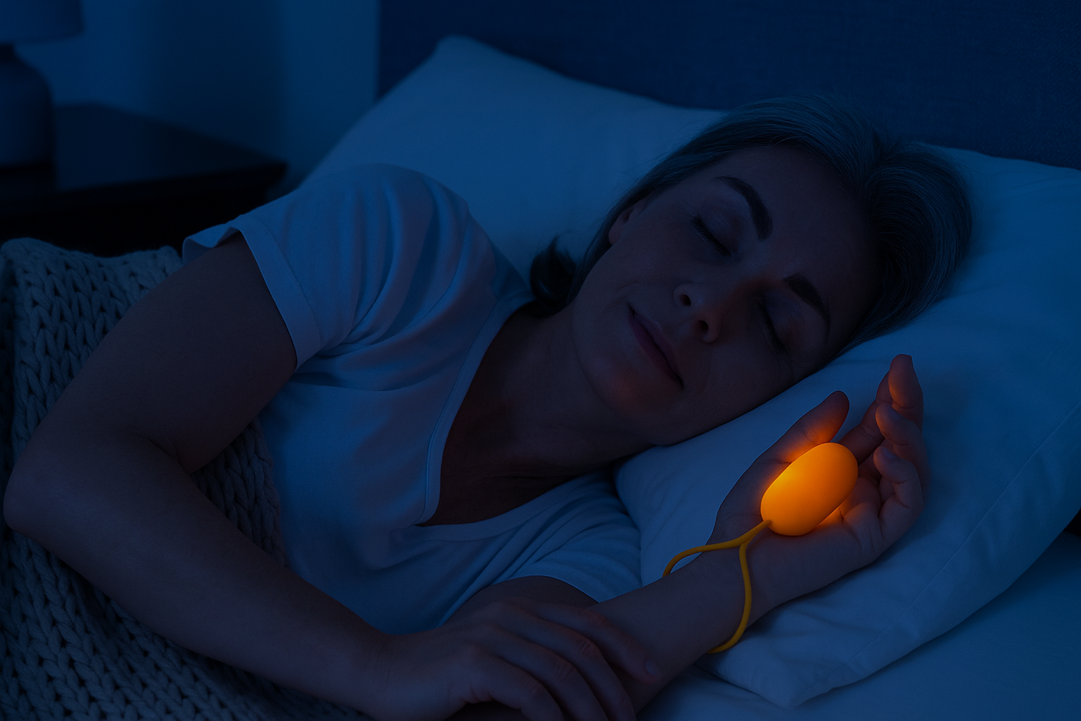 It uses microcurrent pulses on the PC8 acupressure point in your hand, promoting relaxation, releasing endorphins, and balancing your body’s natural energy.